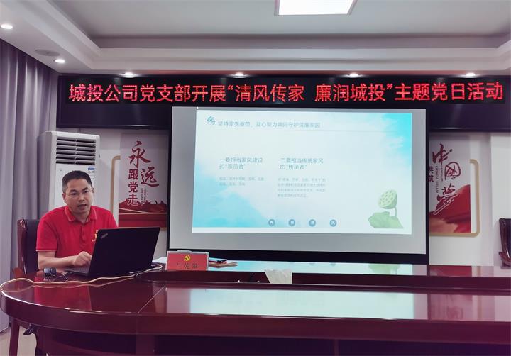為進一步弘揚家風家訓文化,厚植廉潔家風理念,以良好家風助推“清廉城投”建設向縱深發展。8月25日,賀州城投公司黨支部書記、董事長蘭乾雄主持開展“清風傳家 廉潤城投”主題黨日活動。