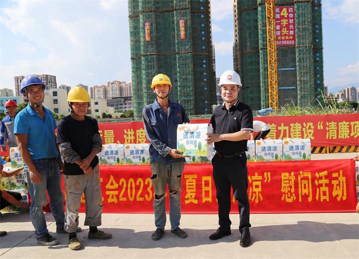 發(fā)布時(shí)間:2023-07-28 作者:圖/義潔 文/胡博文 來源:本站原創(chuàng) 審核:葉茂桃 吳姍炎炎夏日,高溫酷暑。為做好防暑降溫工作,7月28日,市總工會(huì)組織慰問組到城投集團(tuán)實(shí)施的平安居棚改項(xiàng)目開展“送清涼”慰問活動(dòng),為高溫下堅(jiān)守一線工作崗位的職工送去組織的關(guān)懷和夏日的清涼。集團(tuán)黨委委員、副總經(jīng)理柳國忠,集團(tuán)工會(huì)副主席、總經(jīng)理助理謝慈政參加慰問。