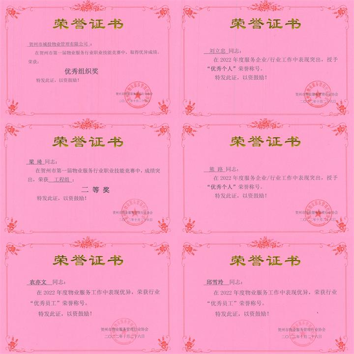 社會形象好,踐行國企擔(dān)當(dāng)。2020—2022年疫情期間,堅持黨員沖鋒在疫情防控一線,按照賀州市統(tǒng)一部署,通過集中培訓(xùn)、精準(zhǔn)調(diào)度、合理安排輪值輪守等舉措,組織全體員工按照疫情防控最新要求落實無縫隙、全覆蓋出入登記、體溫測量、專業(yè)消殺等舉措,充分發(fā)揮黨員先鋒模范帶頭作用,順利實現(xiàn)了所管理的城投.東苑、城東新區(qū)公租房、人才公寓、樂居家園、城投集團(tuán)辦公樓及老陶瓷廠三無小區(qū),所負(fù)責(zé)的太白社區(qū)“零感染”目標(biāo),為賀州市疫情防控做出了應(yīng)有貢獻(xiàn)。2021年榮獲賀州市物業(yè)服務(wù)管理行業(yè)協(xié)會授予“抗擊新冠肺炎疫情優(yōu)秀企業(yè)”稱號、集團(tuán)公司黨委授予2020-2021年度“優(yōu)秀黨員先鋒崗”榮譽(yù)。