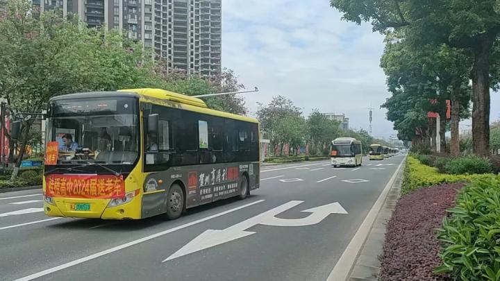 高考期間,送考公交車輛均統(tǒng)一張貼標識,提前在桂梧高中、賀州市第五高級中學、賀州外國語學校等候,將約1100名考生“點對點”送達考點,待考試結束后,再將考生安全送回學校,大大減少了考生的通勤時間。